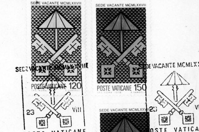 Es zeigt einen gestreiften Schirm mit gekreuzten Schlüsseln sowie die Worte „Sede Vacante“. Die Marken dürften heissbegehrte Sammlerstücke werden, da sie nur bis zur Wahl eines neuen Papstes gültig sind. Das Pontifikat Benedikt XVI. war am Donnerstagabend zu Ende gegangen.