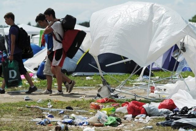 Das Festivalgelände wurde damals von einem heftigen Gewitter mit Sturmböen heimgesucht worden. Die Helfer flüchteten in alle Richtungen. Bis zu 500 Kilo schwere Bodenplatten wurden in die Luft geschleudert.