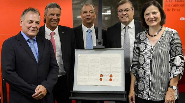 Am 4. August 1815 trat das Wallis als 20. Stand der Eidgenossenschaft bei. Im Vorfeld der 200-jährigen Jubiläumsfeier am Freitag zeigt das Wallis in einer Ausstellung die originale Vereinigungs-Akte und erneuerte das Bekenntnis zur Schweiz.