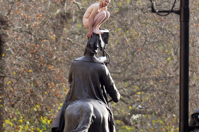 Ein nackter Mann auf einer Statue hat den Verkehr im Londoner Regierungsviertel Westminster am Freitag drei Stunden lang lahmgelegt. Er balancierte in schwindelerregender Höhe auf einer Statue von Prinz George, einem ehemaligen Herzog von Cambridge.