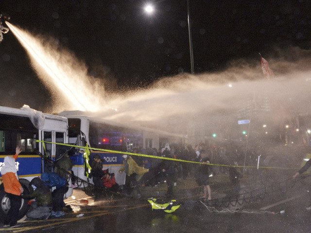 Als Demonstranten am Samstag zum Präsidentenpalast marschieren wollten, versperrten ihnen Bereitschaftspolizisten und Polizeifahrzeuge den Weg, wie die nationale Nachrichtenagentur Yonhap berichtete.