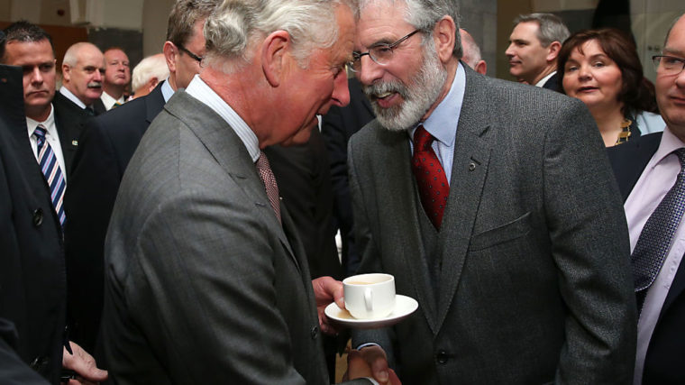 Nie zuvor hatten ein Mitglied der Königsfamilie und ein Angehöriger der Sinn-Fein-Spitze sich auf dem Boden der Republik Irland die Hand gegeben. Die Männer lächelten sich in Galway an der westirischen Küste an und steckten die Köpfe zusammen.