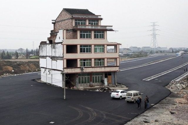 Das Foto ging um die Welt und wurde zum Symbol für den Widerstand chinesischer Hausbesitzer gegen die Behörden: Mitten auf einer breiten Strasse stand umgeben von frischem Asphalt ein vierstöckiges Haus. Die Eigentümer hatten die angebotene Entschädigung als zu niedrig abgelehnt.