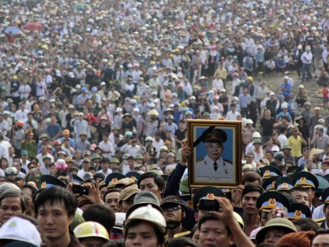 Zuvor hatten die Massen in Hanoi Abschied von Giap genommen, der Anfang Oktober im Alter von 102 Jahren gestorben war. Der mit einer Nationalflagge umhüllte Sarg Giaps wurde in Vung Chua in einer abgelegenen Küstenregion begraben. Zuvor war er mit dem Flugzeug von Hanoi in die Heimat des Generals gebracht worden.