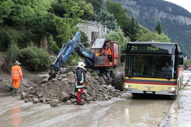 Die rechtsufrige Thunerseestrasse war den ganzen Tag gesperrt. Beim zuständigen Strasseninspektorat ging man davon aus, dass die Strasse am frühen Abend wieder befahrbar sein werde, wie Andreas Müller auf Anfrage sagte.