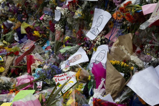 Vor den Toren des Rathauses in Kapstadt, wo Mandela 1990 nach 27 Jahren Gefangenschaft seine erste grosse Rede in Freiheit gehalten hatte, erinnerten viele Blumensträusse an jenen historischen Moment.