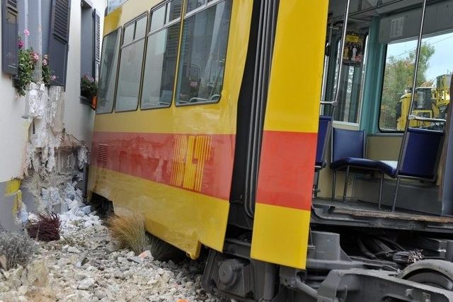 Dies gab die Baselland Transport (BLT) am Donnerstag zum Unfallbericht bekannt. Am 2. November 2011 um 23.35 Uhr fuhr ein Tram von der Haltestelle Münchenstein Dorf weg in Richtung Dornach SO. Das Tram entgleiste bei der Abzweigung zur dortigen Wendeschlaufe, und der Zugwagen krachte in eine Wand eines Einfamilienhauses. Sechs Passagiere wurden leicht verletzt; alle Hausbewohner blieben unversehrt.