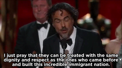 Sean Penn witzelte später, als es um den Oscar des besten Film ging, dass man diesen Typen nie hätte einbürgern sollen, und verkündete den gebürtigen Mexikaner Iñarritu als grossen Gewinner. Dieser wünschte sich von den Amerikanern am Ende seiner Dankesrede, dass seine Landsleute ebenso aufgenommen würden wie alle Immigranten in der Vergangenheit der USA.