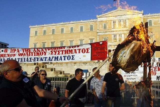 Vor dem Parlament kam es am Abend zu Protesten gegen die neuen Sparmassnahmen. Nach unterschiedlichen Agenturangaben demonstrierten zwischen 800 und 3000 Menschen gegen die Massenentlassungen. Zu der Demonstration aufgerufen hatten die griechischen Gewerkschaften ADEDY und GSEE.