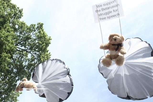 Ein von einem Schweden gelenktes Kleinflugzeug hatte im Juli die Grenze zu Weissrussland überflogen und dort hunderte Teddybären an kleinen Fallschirmen abgeworfen. Diese trugen Protestlosungen zur Lage der Menschenrechte in der ehemaligen Sowjetrepublik.