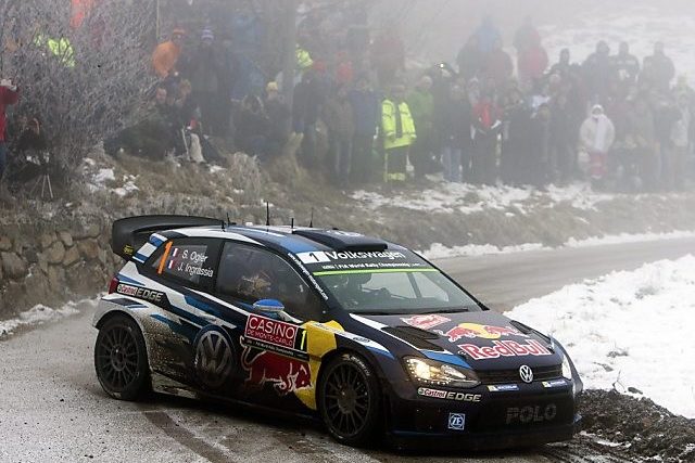 Monte Carlo. Rallye-WM. Schlussklassement (15 Sonderprüfungen/1403,08 km): 1. Sébastien Ogier/Julien Ingrassia (Fr), VW Polo, 3:30:07,0 Stunden. 2. Jari-Matti Latvala/Mikka Anttila (Fr), VW Polo, 58,8 Sekunden zurück. 3. Andreas Mikkelsen/Ola Flöne (No), VW Polo, 2:12,3. 4. Mads Östberg/Jonas Andersson (No/Sd), Citroën, 2:33,6. 5. Thierry Neuville/Nicolas Gilsoul (Be), Hyundai, 3:12,1. 6. Daniel Sordo/Marc Marti (Sp), Hyundai, 3:12,9.