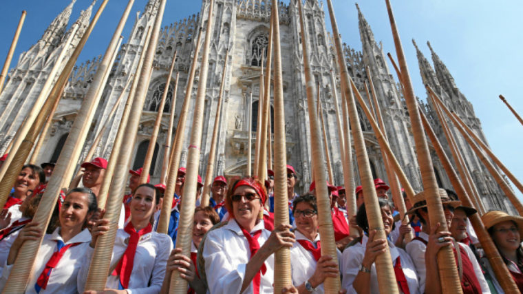 420 Alphornbläserinnen und -bläser haben am Samstag auf dem Domplatz in Mailand ihre Hörner erklingen lassen – so viele wie nie zuvor im Ausland. Nach Angaben der Veranstalter ist das ein Weltrekord und soll ins Guinness Buch der Rekorde.