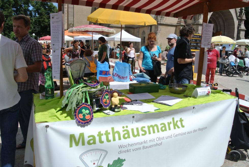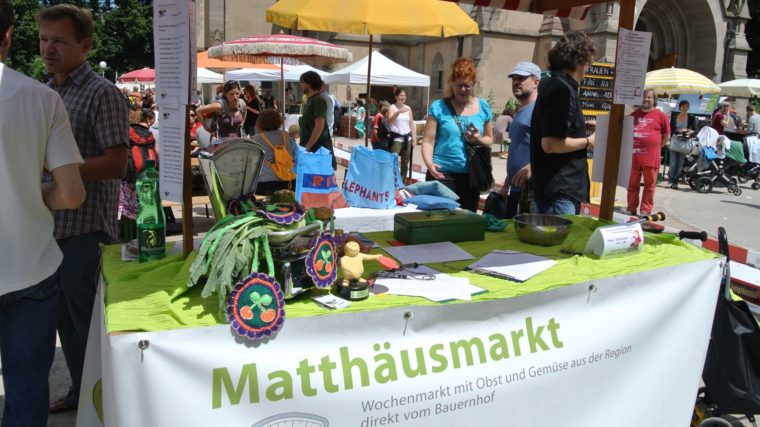 Leere Stände gab es am Matthäus-Saisonmarkt aber dennoch nicht: Frisches Gemüse und Brot, Sirup und weitere Getränke, allerlei Nonfood-Produkte, wie es im Jargon der Grossverteiler heisst, entschädigten für den Kirschenmangel. Und es gab Bier aus der unmittelbaren Nachbarschaft zu kaufen. Die Hobbybrauerei BrauBudeBasel bot ihre fünf Biersorten an. Seit einigen Monaten brauen die Bierfreunde ihren Gerstensaft in der ehemaligen Backstube an der Oetlingerstrasse 84.