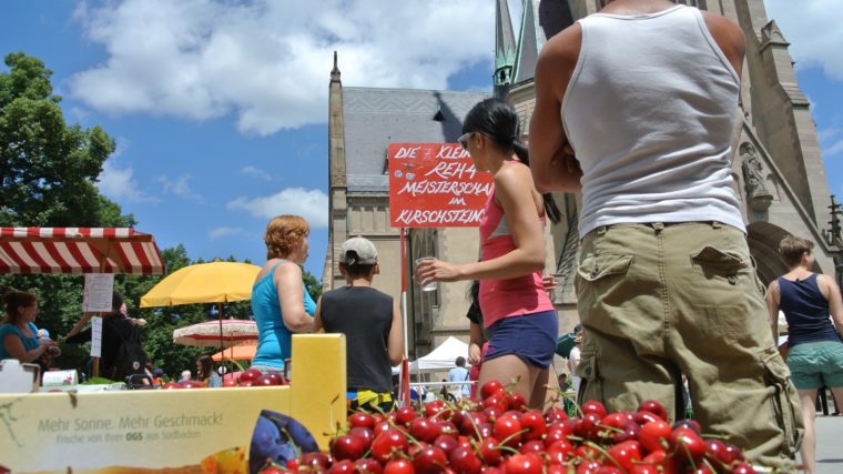 Allzu viele Kirschen gab es allerdings nicht zu kaufen. Das liegt aber keinswegs am mangelnden Engagement der Marktbetreiber, sondern am Wetter. Genauer, an den Wetterbedingungen des verpassten Frühlings. Wie das Informationszentrum für die Landwirtschaft proplanta schreibt, hat die Kirschenpflücksaison dieses Jahr einiges an Verspätung. Die Haupternte werde erst auf Mitte Juli erwartet, heisst es in der Medienmitteilung.
