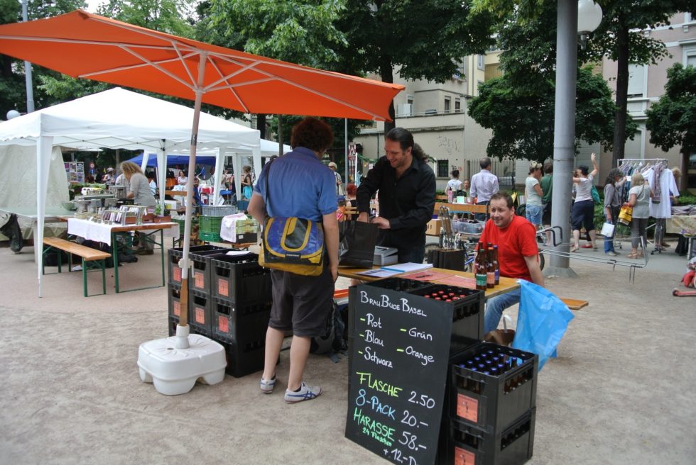 Leere Stände gab es am Matthäus-Saisonmarkt aber dennoch nicht: Frisches Gemüse und Brot, Sirup und weitere Getränke, allerlei Nonfood-Produkte, wie es im Jargon der Grossverteiler heisst, entschädigten für den Kirschenmangel. Und es gab Bier aus der unmittelbaren Nachbarschaft zu kaufen. Die Hobbybrauerei BrauBudeBasel bot ihre fünf Biersorten an. Seit einigen Monaten brauen die Bierfreunde ihren Gerstensaft in der ehemaligen Backstube an der Oetlingerstrasse 84.