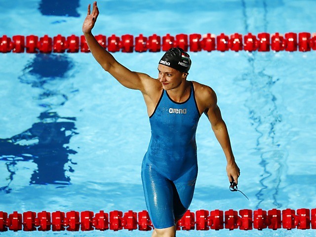 Nachdem die 24-Jährige im Vorlauf die Bestmarke der Holländerin Hinkelien Schreuder um einen Hundertstel auf 57,73 verbessert hatte, steigerte sich sich im Final auf 57,50. Zudem schwamm sie über 400 m Lagen in 4:22,18 einen Europarekord. Bei den Langbahn-Weltmeisterschaften in Barcelona hatte Hosszu über 200 und 400 m Lagen Gold gewonnen.