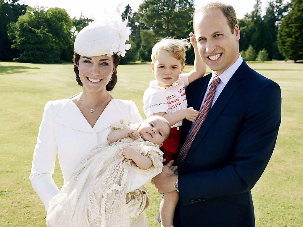 Der Kensington-Palast hat die offiziellen Fotos zur Taufe von Prinzessin Charlotte vom vergangenen Sonntag veröffentlicht. Zu sehen sind die Eltern Prinz William und seine Frau Kate mit dem Kind im historischen Taufkleid und dem stolzen Brüderchen George.