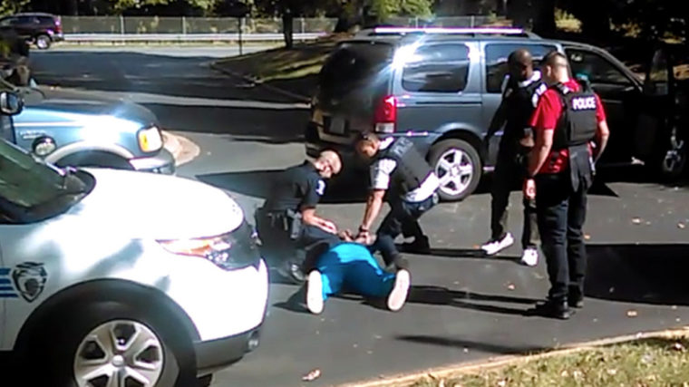 Die Polizisten rufen auf der Aufnahme mehrfach: «Wirf die Waffe weg!» Erneut schaltet sich Rakeyia Scott ein, die ihrem Mann zuruft: «Lass sie nicht die Fenster aufbrechen! Komm aus dem Wagen raus!» Danach ruft sie: «Keith, mach das nicht! Keith, komm aus dem Wagen!»