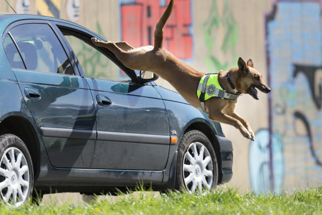 Daïka bellt. Der Hundetrainer vis-à-vis hat sich Beinschoner montiert, zückt einen Stock und schlägt damit auf eine leere Waschmittelflasche. Die junge Hündin wird nervös, das ist Absicht. Doch Daïka bleibt brav neben ihrer Halterin – bis der Befehl kommt: «Fass!». Knapp zwei Sekunden später beisst die Hündin in die durch Polster geschützte rechte Wade des Hundetrainers. Daïka lässt nicht von ihm ab, ist unbeeindruckt vom wilden Zappeln der Zielperson. Erst als diese die Schoner von ihrem Bein löst, springt die Hündin samt Polster in der Schnauze davon.