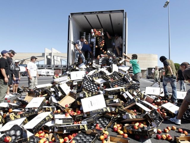 AFP-Journalisten berichteten, das zweistöckige kürzlich errichtete Gebäude sei am einen Ende vollständig zerstört. Nicht nur vor dem Finanzamt, sondern auch an verschiedenen weiteren Punkten der Stadt sowie auf der Nationalstrasse nach Brest luden die Bauern Haufen mit Gemüse ab.