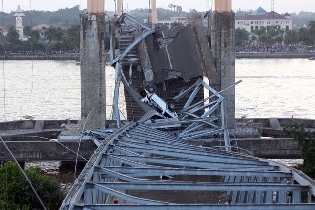 Bauminister Djoko Kirmanto hatte der Zeitung „Jakarta Post“ am Montag gesagt, das Bauwerk sei beschädigt gewesen, nachdem es in der Vergangenheit mehrfach von Schiffen gerammt worden sei.