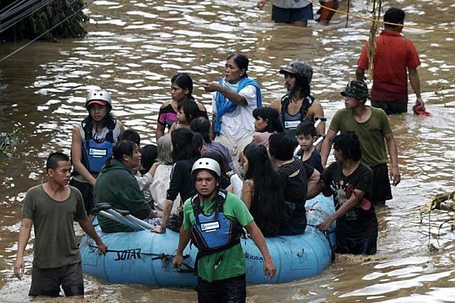 Nach Angaben des Chefs der Zivilschutzbehörde, Benito Ramos, wurden 400 Menschen in den beiden am schwersten betroffenen Städten gerettet. Hunderte Helfer seien im Einsatz, um nach Verletzten zu suchen. Der Tropensturm zog am Samstag über Mindanao. Er wirbelte mit Geschwindigkeiten von 75 Kilometern in der Stunde.