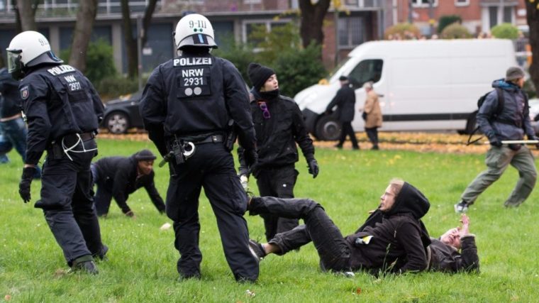 Vereinzelt kam es zu gewaltsamen Auseinandersetzungen zwischen Hooligans und Gegendemonstranten aus dem linken Lager. Die Polizei setzte Wasserwerfer gegen linke Demonstranten ein, die zur Kundgebung von «Hogesa» vordringen wollten.