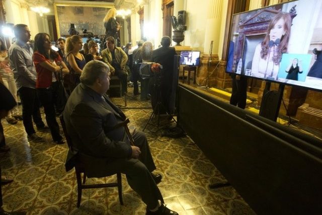 Darin pries diese die «Erfolge» ihrer Amtszeit. «Argentinien ist das einzige Land in der Welt, das seine externen Schulden reduziert hat», verkündete Kirchner. Vor ihrem Auftritt im Parlament hatte die Präsidentin die Demonstranten vor dem Gebäude gegrüsst. Auf deren Spruchbändern war unter anderem zu lesen: «Cristina ist das Volk».