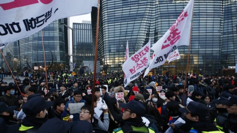 Sie verlangten eine sofortige und dauerhafte Entmachtung der in eine Korruptionsaffäre verstrickten Staatschefin. Die Polizei sprach von 60’000 Demonstranten. Zudem versammelten sich demnach rund 30’000 Unterstützer der Präsidentin zu einer Gegenkundgebung.