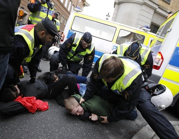 Bei einer Demonstration von Rechtsextremisten in Stockholm ist es am Samstag zu Zusammenstössen mit linksgerichteten Gegendemonstranten gekommen. Die Linken bewarfen die Teilnehmer der rechtsextremistischen Protestaktion, die sich gegen Einwanderer richtete, mit Flaschen, Eiern sowie Feuerwerkskörpern.