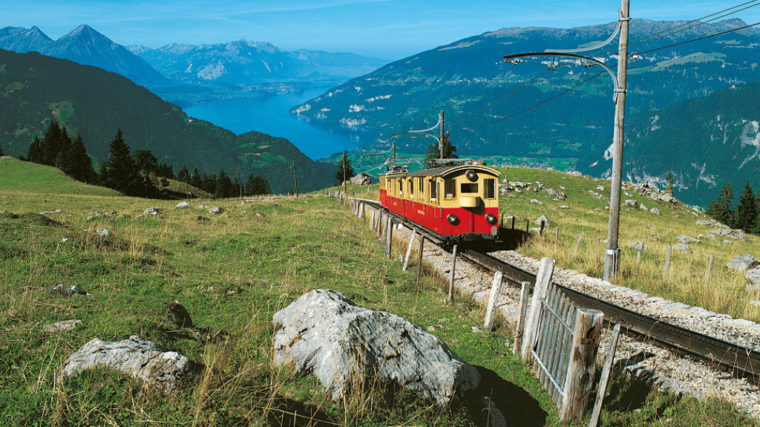Die Schynige-Platte-Bahn führt von Wilderswil auf den Aussichtsberg Schynige Platte. Die Strecke misst 7,3 Kilometer.