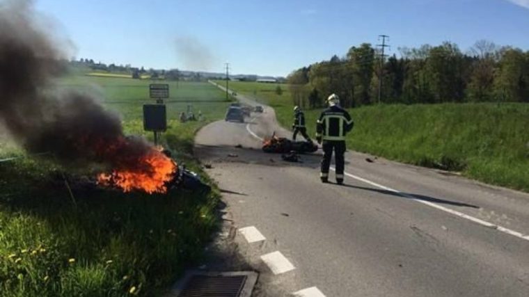 Nach ersten Erkenntnissen kollidierte ein 31-jähriger Autolenker mit einem der Motorräder. Die verletzte Motorradfahrerin verständigte daraufhin die Polizei. Vor Ort fand diese aber ein weiterer Motorradfahrer, ebenfalls verletzt, und ein zweites brennendes Motorrad. Inwiefern der 61-Jährige in den Unfall verwickelt war, ist unklar.