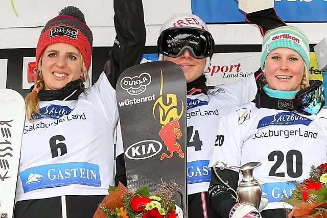 Die Qualifikations-Dritte Julie Zogg setzte sich im Rennen um Rang 3 dank eines Blitzstarts gegen die Deutsche Selina Jörg durch. Die mehrfache Junioren-Weltmeisterin wurde mit ihrem fünften Podestplatz im Weltcup belohnt. In der Vorschlussrunde war sie gegen Ledecka ausgeschieden. Auch ihren ersten Weltcup-Podestplatz hatte Zogg in Bad Gastein erreicht (im Januar 2012 als Zweite).