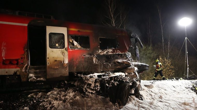 Wie schnell der Zug unterwegs war, wusste die Polizei in der Nacht nicht. Züge könnten auf der Strecke aber bis zu 140 Kilometer pro Stunde fahren. Wie es zu dem Unglück kam und weshalb der Schwertransporter auf den Gleisen feststeckte, blieb zunächst noch ungeklärt.