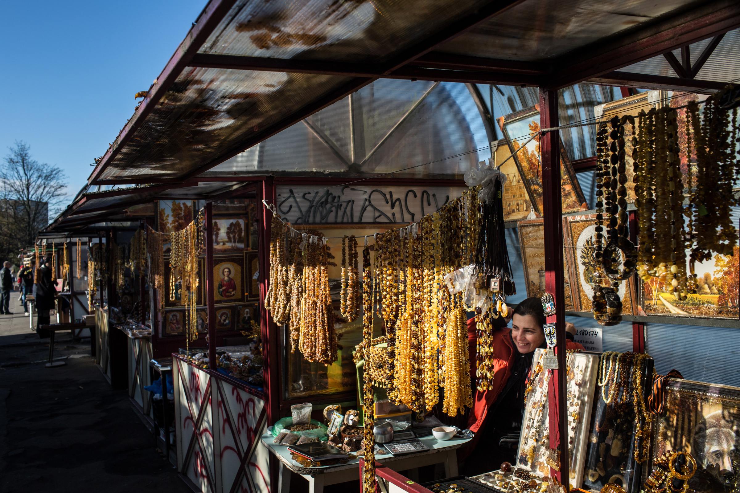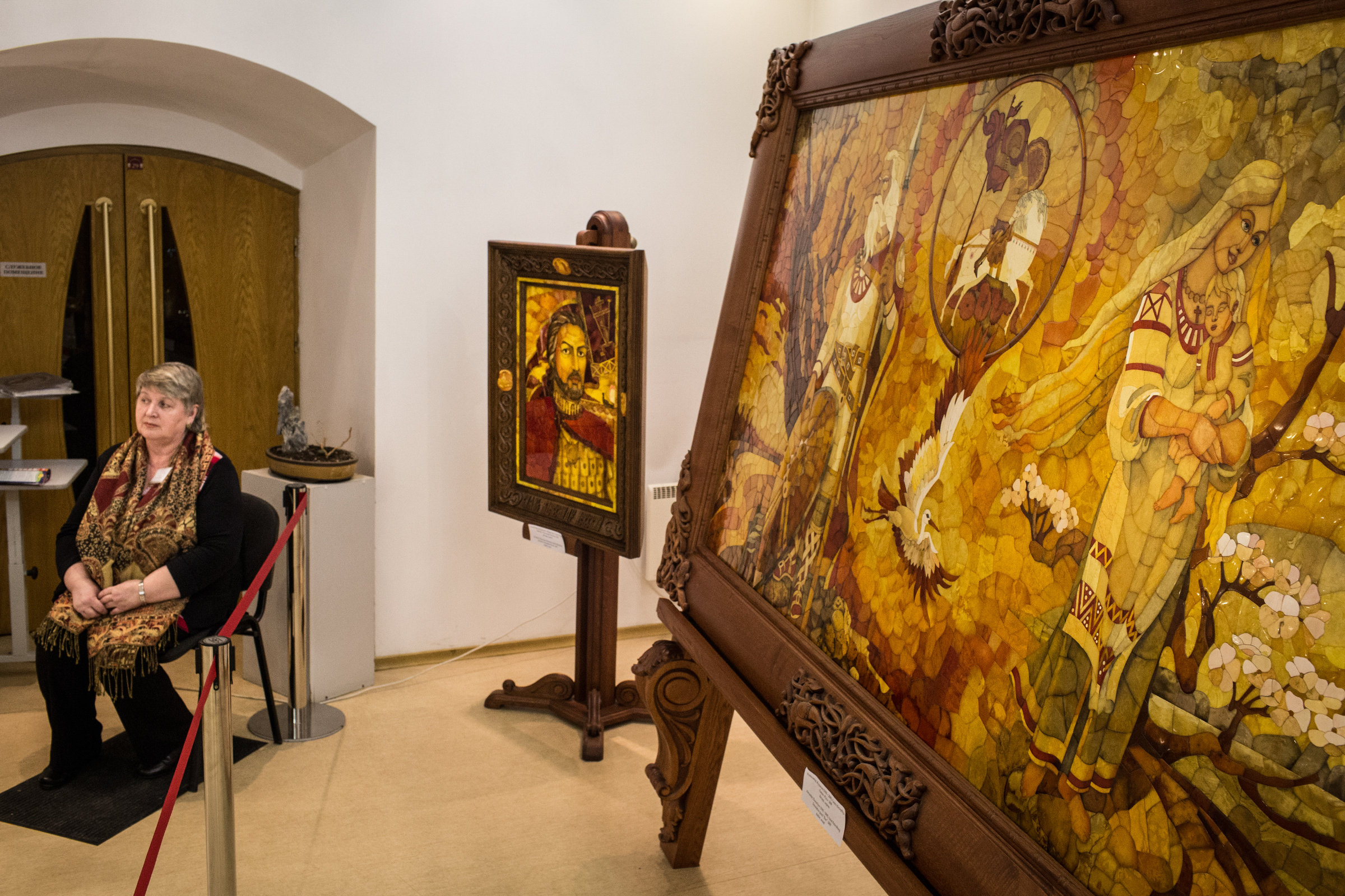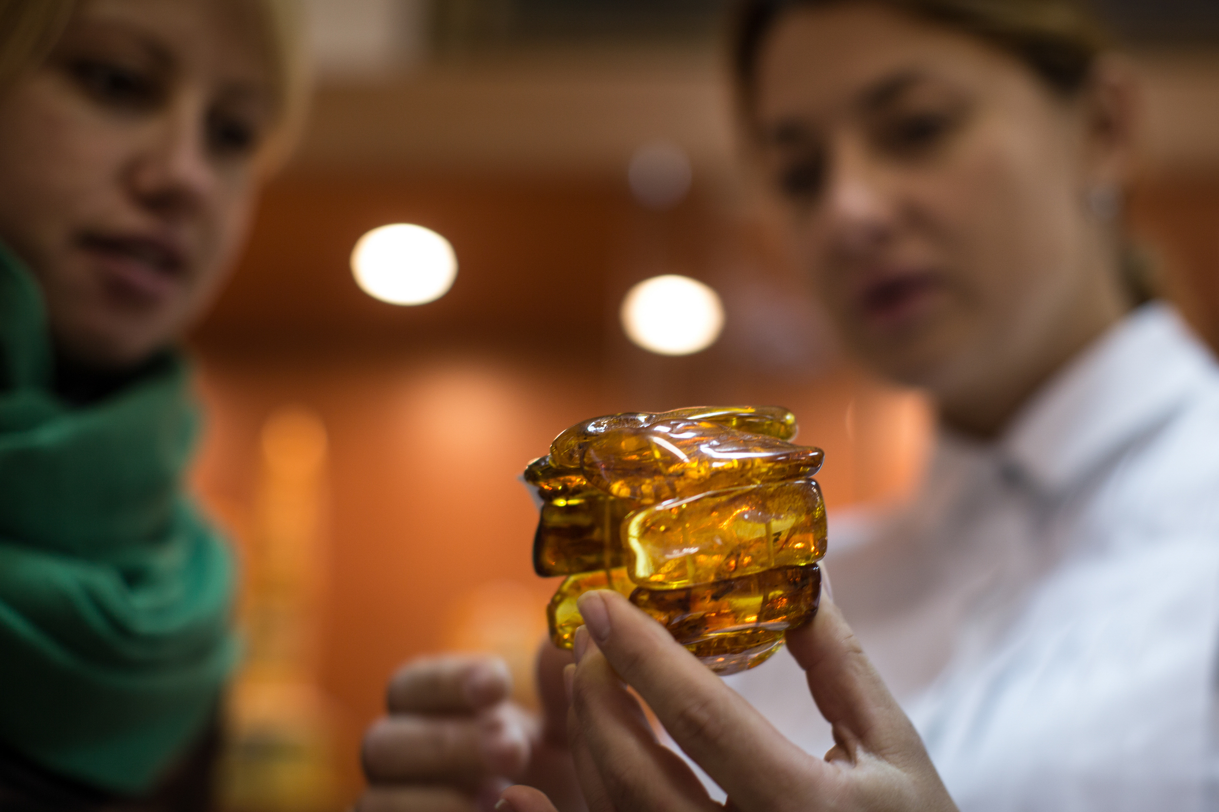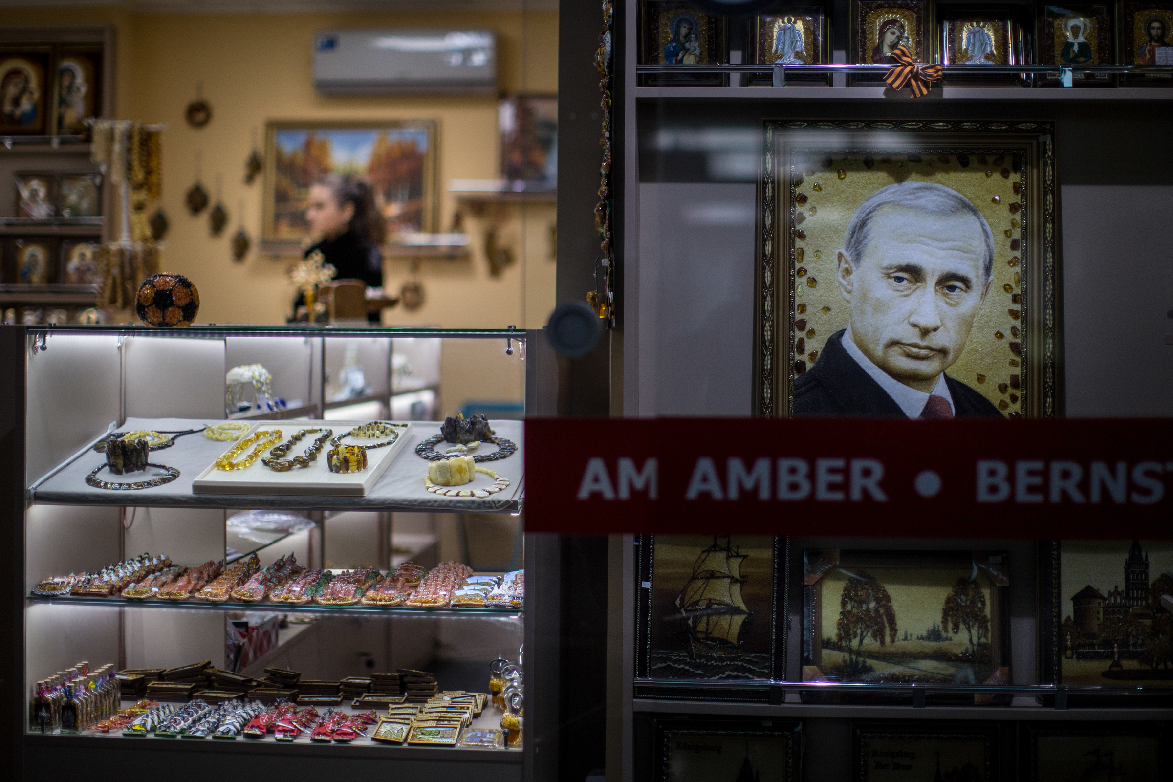 90 Prozent aller weltweit verkauften Bernsteine stammen aus dem russischen Kaliningrad. Der Bernstein wird dort an der Ostseeküste zwischen Polen und Litauen abgebaut und auch verarbeitet. Alles, was sich aus Bernstein machen lässt, kann man in den Schaufenstern der Werkstätten bewundern – bis hin zu Putin-Mosaiken.