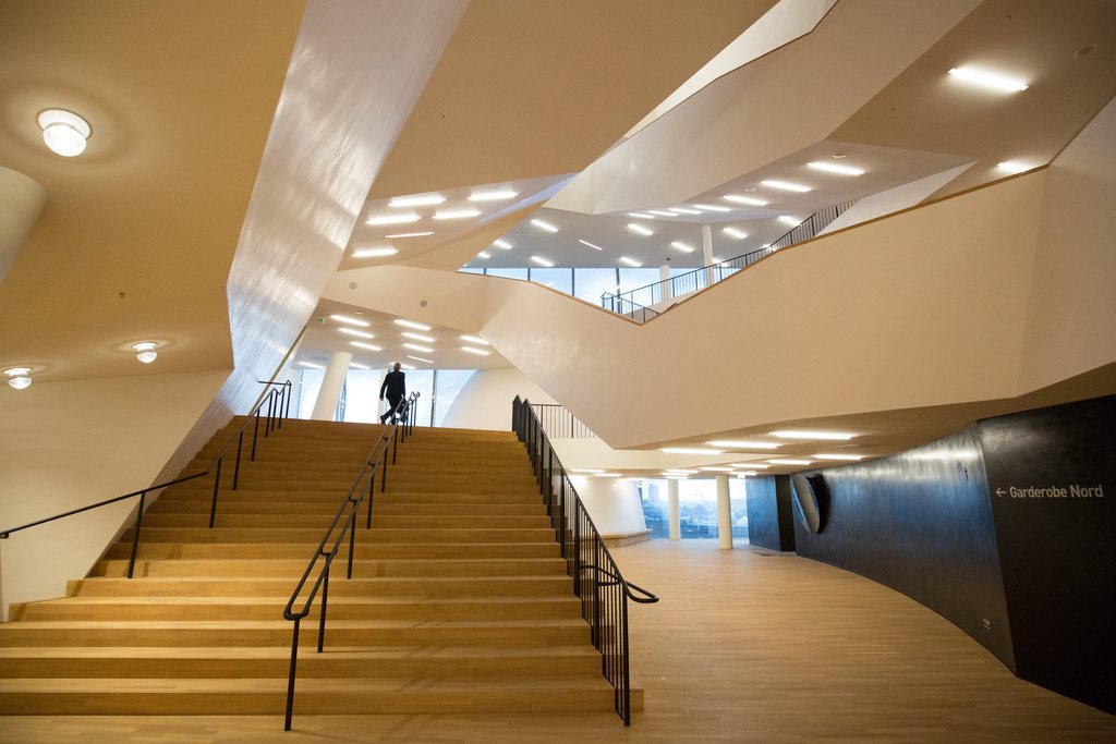 Rund anderthalb Monate vor der eigentlichen, nämlich musikalischen, Eröffnung des neuen Konzertsaals, waren erstmals Einblicke in den fertigen Konzertsaal möglich: Sie bieten ein vergleichbar spektakuläres Bild wie die Aussensicht, die ja schon seit längerer Zeit möglich war.