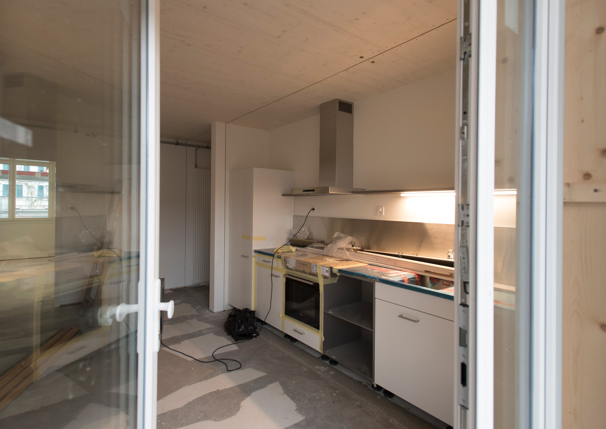 68 Quadratmeter für vier Personen, 101 Quadratmeter für sechs bis acht Personen – das sind die Masse der Container-Wohnungen. Darin befinden sich ein Schlafzimmer, ein kleiner Wohnbereich mit Küche und ein separates Bad.