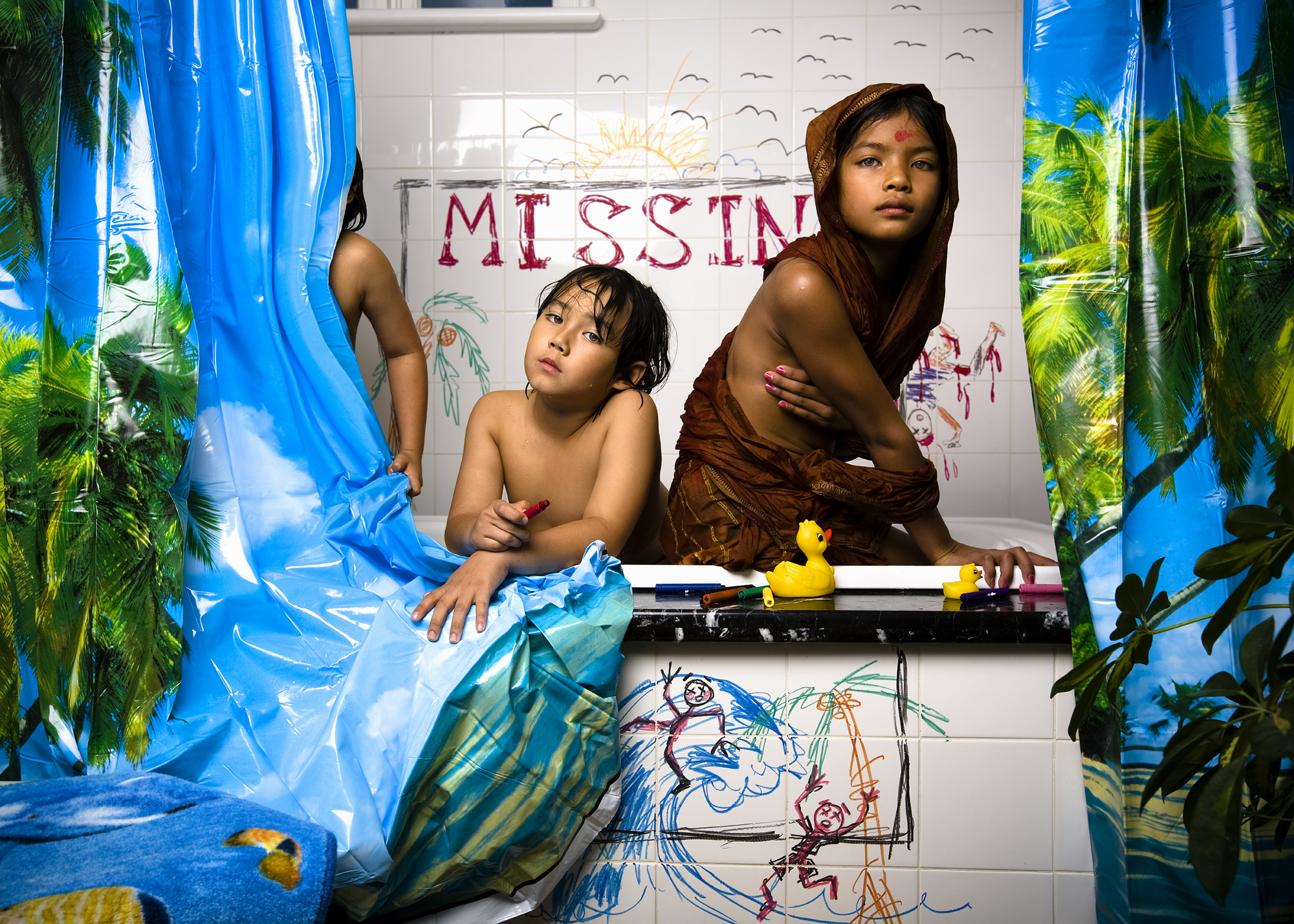 In der Reihe «In the playroom» stellt der kanadische Fotograf Jonathan Hobin in Kinderzimmern Szenen bekannter Ereignisse nach.