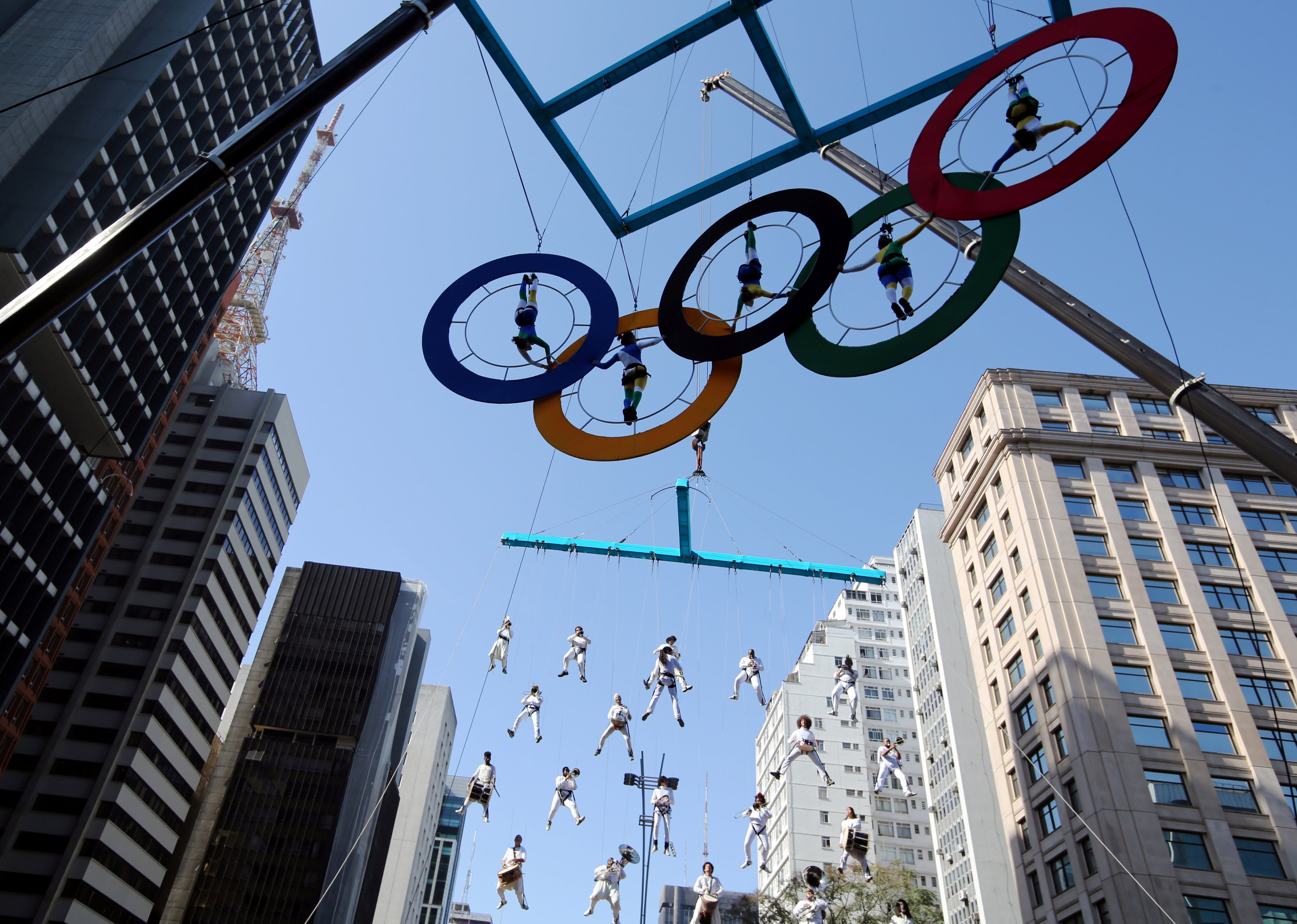 São Paolo: Die Wettkämpfe werden in Rio ausgetragen, aber auch im Finanzdistrikt der Wirtschaftsmetropole weht oder besser turnt der olympische Geist durch die Luft.