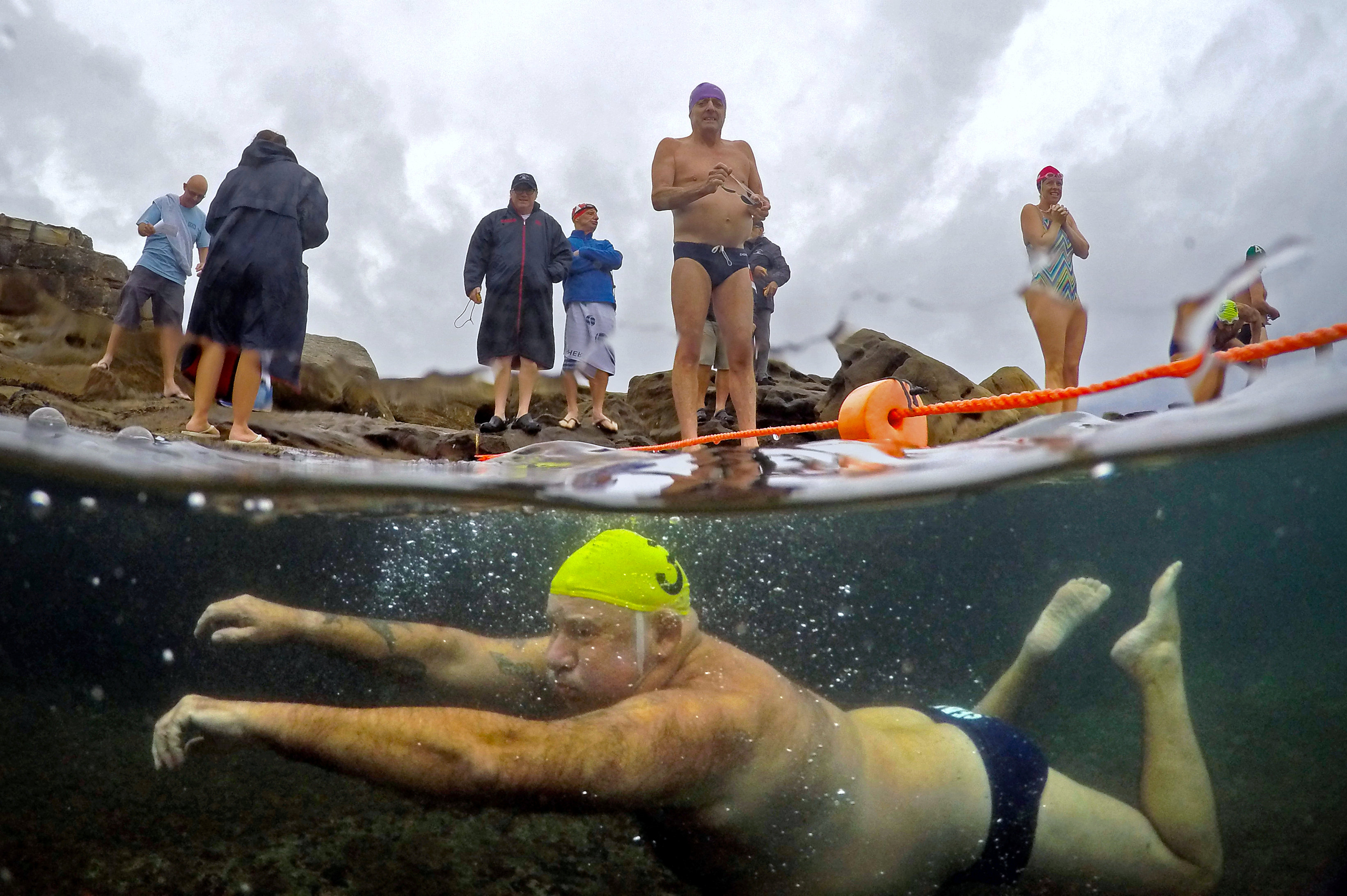 Maroubra Beach: Da stimmt doch etwas nicht! Die schlotternden Gestalten wirken wie aus der Jahreszeit gefallen. Doch sie frieren richtig, denn während wir den kühlen Schatten suchen, feiern in Sydney die Winterschwimmer den Saisonstart.