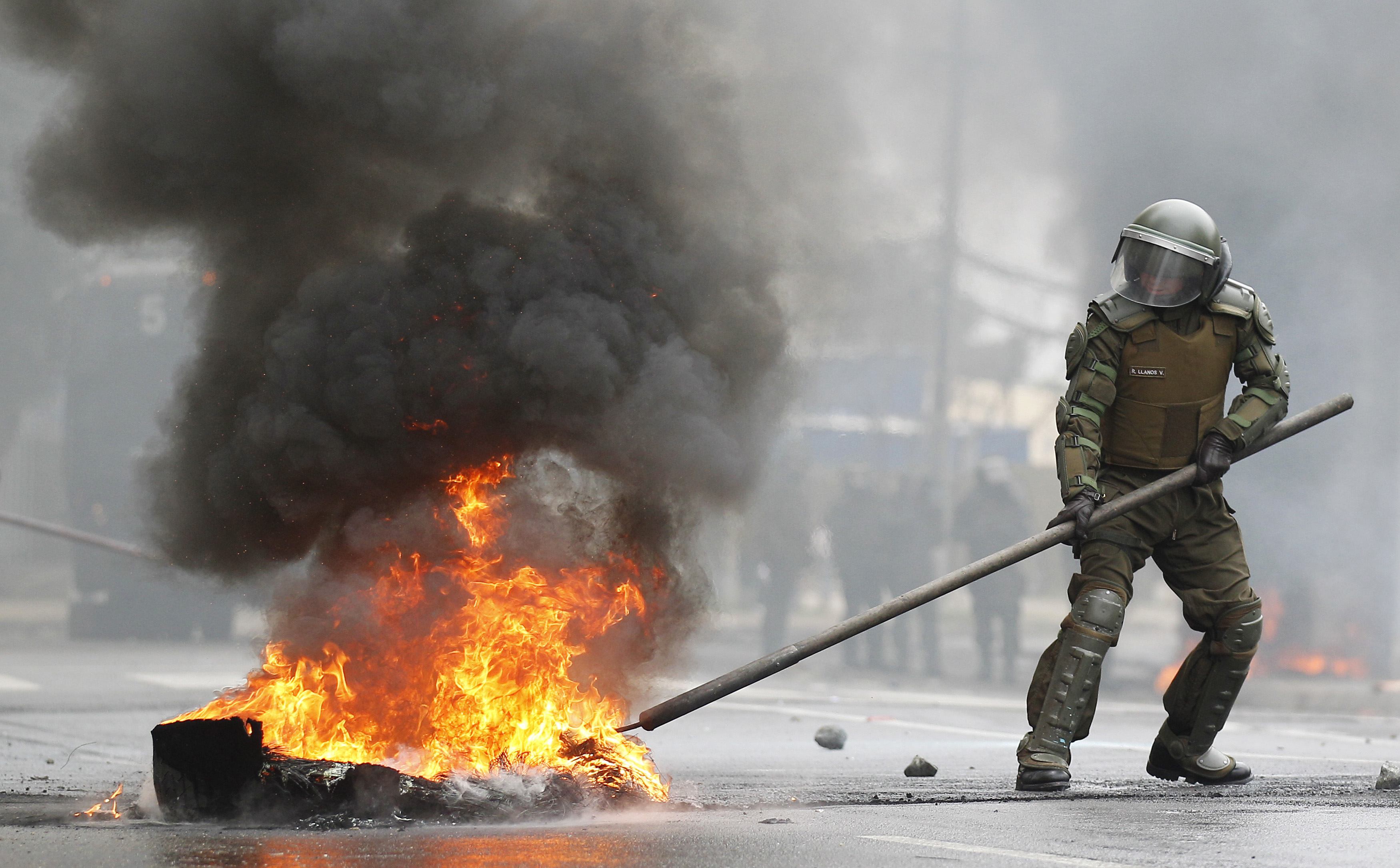 A riot police officer tries to extinguish burning tyres during a protest marking the 1973 military coup in Valparaiso city, about 121 km (75 miles) northwest of Santiago, September 4, 2013. September 11 marks the 40th anniversary of the coup d’etat in Chi (Bild: Eliseo Fernandez) NASA’s Lunar Atmosphere and Dust Environment Explorer (LADEE) spacecraft is pictured orbiting near the surface of the moon, in this artist’s illustration released by NASA on August 15, 2013. More than 40 years after the last Apollo astronauts left the moo (Bild: NASA) The sun sets over New York city as viewed from the Arthur Ashe Stadium, venue of the U.S. Open tennis championships, in New York September 4, 2013. REUTERS/Adam Hunger (UNITED STATES – Tags: SPORT TENNIS CITYSCAPE ENVIRONMENT TPX IMAGES OF THE DAY) (Bild: ADAM HUNGER) Defendant Beate Zschaepe, a member of the neo-Nazi cell, the National Socialist Underground (NSU) arrives for the continuation of her trial in a courtroom in Munich September 5, 2013. Zschaepe, 38, is accused of being an NSU founder member and faces charg (Bild: MICHAELA REHLE) The early morning sun hits The Shard building as fog clears over London, September 5 , 2013. REUTERS/Dylan Martinez (BRITAIN – Tags: REAL ESTATE BUSINESS TPX IMAGES OF THE DAY ENVIRONMENT) (Bild: DYLAN MARTINEZ) A yet unnamed female elephant calf stands under its half-sister Mongu in their enclosure at Schoenbrunn zoo in Vienna September 5, 2013. The baby elephant was born on September 4 after 645 days of pregnancy of its mother Tonga, following the first ever su (Bild: HEINZ-PETER BADER) People present a part of a visual illusion next to washing machines to promote Bosch at the IFA consumer electronics fair in Berlin September 5, 2013. The IFA consumer electronics and home appliances fair will open its doors to the public from September 6 (Bild: TOBIAS SCHWARZ) A plainclothes policeman inspects the scene of an explosion near the house of Egypt’s interior minister at Cairo’s Nasr City district September 5, 2013. Egyptian Interior Minister Mohamed Ibrahim survived an assassination attempt unhurt on Thursday when a (Bild: AMR ABDALLAH DALSH) Nick Vujicic, an Australian motivational speaker who was born without limbs, jumps into his enclosure as he dives with sharks at the Marine Life Park in Singapore September 5, 2013. Vujicic dived in a customized acrylic enclosure that takes in a 360-degre (Bild: EDGAR SU) A boy plays as he’s surrounded by mist at the Los Angeles County Fair in Pomona, California September 4, 2013. REUTERS/Lucy Nicholson (UNITED STATES – Tags: SOCIETY) (Bild: LUCY NICHOLSON) A rocket launcher is positioned at a military base on the Turkish-Syrian border town of Reyhanli, in Hatay province, southern Turkey September 5, 2013. REUTERS/Umit Bektas (TURKEY – Tags: POLITICS MILITARY) (Bild: UMIT BEKTAS)