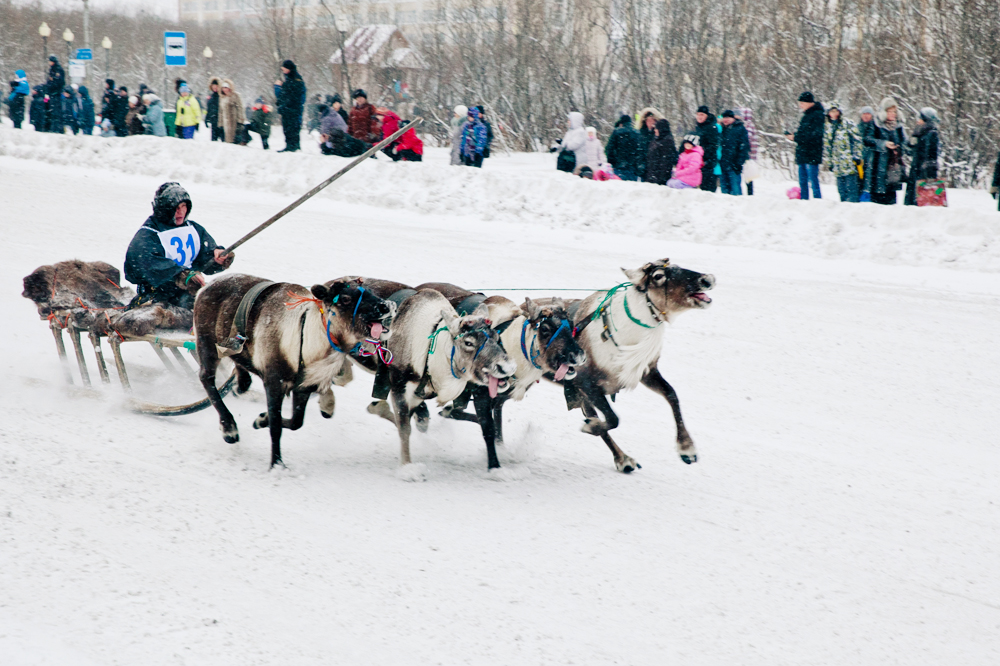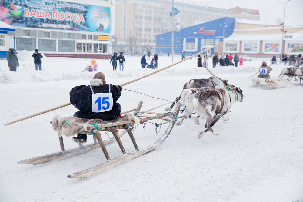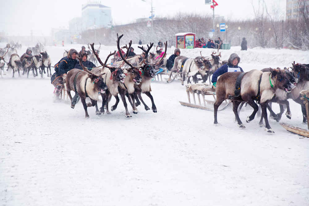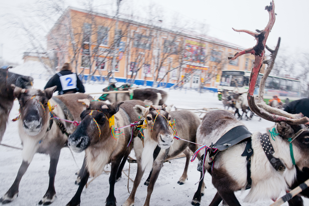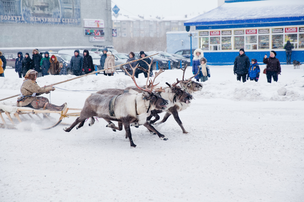 In Workuta, einer Stadt 150 Kilometer vom Nordpol entfernt, mitten in der russischen Tundra, wird jeden November ein ungewöhnlicher Feiertag begangen: Am Rentierzüchtertag fahren Nomaden aus den umliegenden Regionen mit ihren Rentieren nach Workuta. Der Höhepunkt des Feiertags: Ein Rentierrennen durch die Stadt. Zu gewinnen gibt es, passend zu den klirrend kalten Wintern in dieser Region, ein Schneemobil. Die Tradition des Rennens ist noch relativ jung. Ein Bürgermeister rief die Veranstaltung vor etwas mehr als zehn Jahren ins Leben.