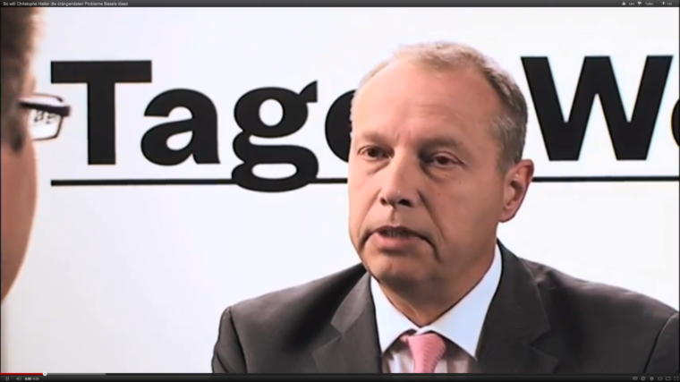 Im Wahlkampf gibt sich Christophe Haller (55) als Mann, der für Ruhe und Ordnung sorgt. Im Videointerview mit der TagesWoche ist dieser Haller ebenfalls zu hören. Etwa, wenn er mehr Polizei fordert und sich über die schmutzigen Strassen beklagt.