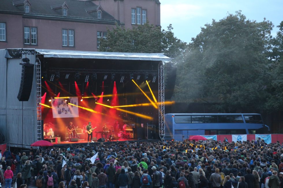 Der hält, mit grauen Anzug und schnittigem Hut, mit seiner elegant ausgeflippten Bühnenperformance, seinen Tänzeleien und exaltierten Posen, das Publikum trotz neuem Regen prächtig bei Laune. Kommt hinzu, dass Maxïmo Park sich keine Illusionen zur Tiefenwirkung ihrer Songs machen: formvollendete Hits landen sie nur selten, daher bevorzugen sie es kurz und knackig: steckt in einem Song keine zündende Idee, folgt zum guten Glück zwei Minuten später schon der nächste, was das Energielevel hochhält. Das Quintett, mag man vermuten, hat das selbst längst erkannt, horcht man «Apply Some Pressure», einer ihrer wenigen Hits, hinterher. «What happens when you lose everything?», fragt Smith dort in der Kernzeile, und gibt sich die Antwort gleich selbst: «You just start again.» Immer wieder aufs Neue versuchen, und dazwischen möglichst nicht langweilen. Maxïmo Park haben das begriffen.