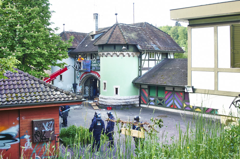 Der Widerstand fiel dagegen bescheiden aus, nur gerade zwei Besetzer waren auf dem Gelände anwesend. Später gesellten sich noch etwa zwei Dutzend Sympathisanten dazu. Diese machten ihrem Unmut über die Räumung verbal Luft, zu gewalttätigen Ausschreitungen kam es nicht.