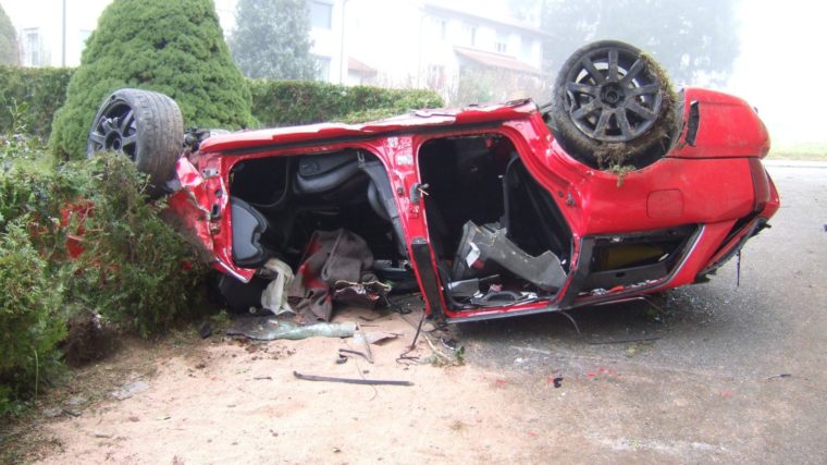 Gemäss den bisherigen Erkenntnissen der Polizei Basel-Landschaft war ein 20-jähriger, in der Region wohnhafter Schweizer mit seinem stark motorisierten Personenwagen in Fahrtrichtung Brislach-Dorf unterwegs. In einer Linkskurve geriet das Fahrzeug aus noch nicht restlos geklärten Gründen rechts über den Fahrbahnrand hinaus, prallte dort zunächst heftig auf einen grossen Stein (welcher mehrere Meter wegkatapultiert wurde), hob ab, durchbrach einen Tujahag, überschlug sich, prallte gegen eine Hauswand und kam schliesslich auf dem Dach liegend im Bachmattweg zum Stillstand.