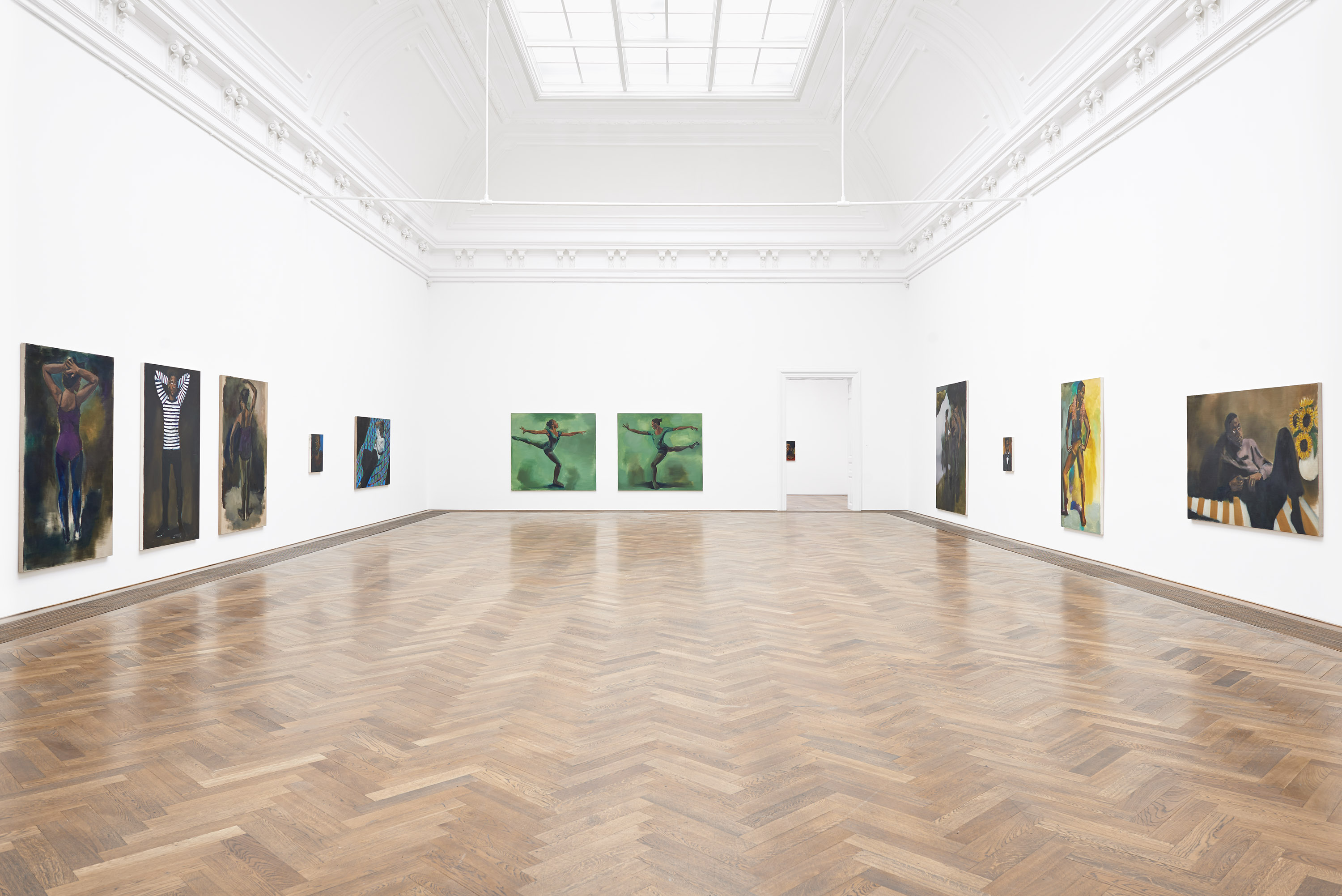Figuren, wohin das Auge blickt. Sie liegen auf Sofas, bewegen sich im Tanz, wirken nachdenklich oder blicken geradeaus, dem Betrachter direkt in die Augen. Der erste Gedanke kommt sofort: Wer sind diese Menschen, die die Londoner Künstlerin hier porträtiert? Und schon liegt man falsch. Denn es handelt sich hier nicht um Porträts im klassischen Sinne, auch wenn einiges an den Bildern klassisch ist.