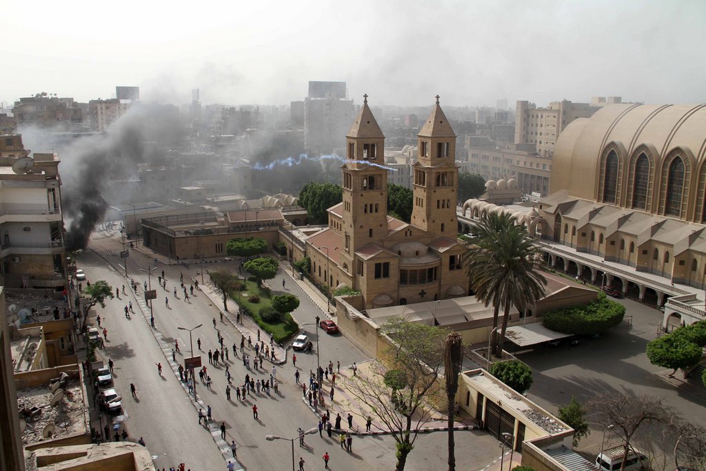 Tränengas und Rauch vor der Abbassiya Kathedrale – 2013 kam es zu blutigen Konflikten zwischen Kopten und Muslimen in Kairo. Die Hälfte aller religiösen Konflikte hat ihren Ursprung beim Streit um den Bau von Kirchen. (Bild: EPA/STR)