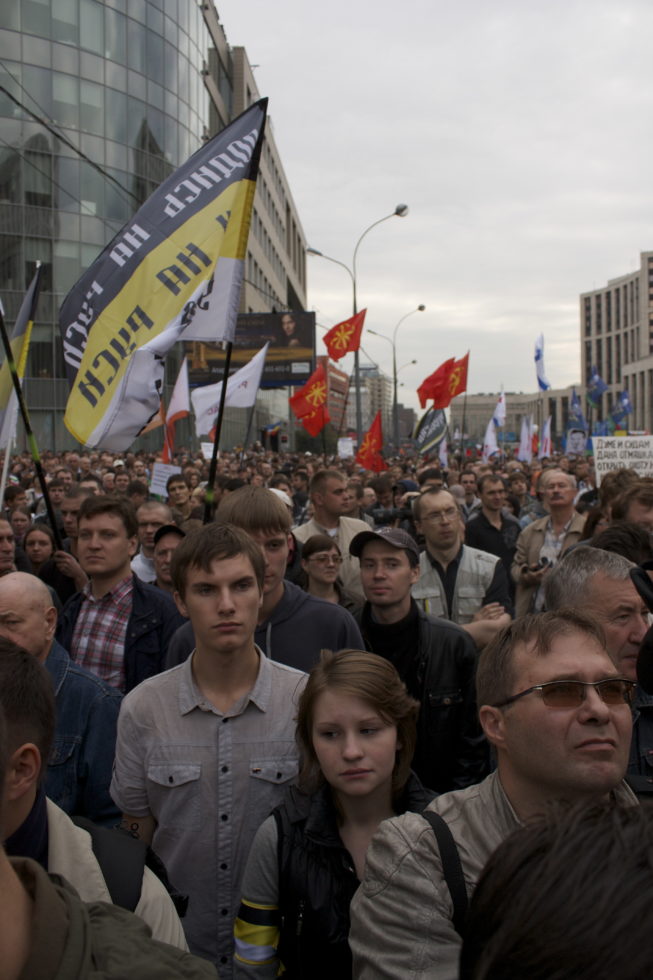 Vor der Hauptbühne am Sacharow Prospekt treffe ich Alexander Mend: «Bis jetzt hat die Opposition nur gezeigt, dass sie Demonstrationen organisieren kann. Alles weitere ist sie uns bis heute schuldig geblieben.» Der 23-jährige möchte sich keiner politischen Gruppierung anschliessen, denkt aber, dass es äusserst wichtig sei, an den Protesten teilzunehmen. «Es muss den Leuten klar werden, dass es diese Bewegung gibt, die nicht mit der Regierung einverstanden ist», sagt der Philosophiestudent. Eines Tages, so hofft er, kann er auch seine Eltern davon überzeugen, die zur Zeit nicht viel davon halten, dass ihr Sohn bereits zum fünften Mal an einer Demonstrationen teilnimmt.