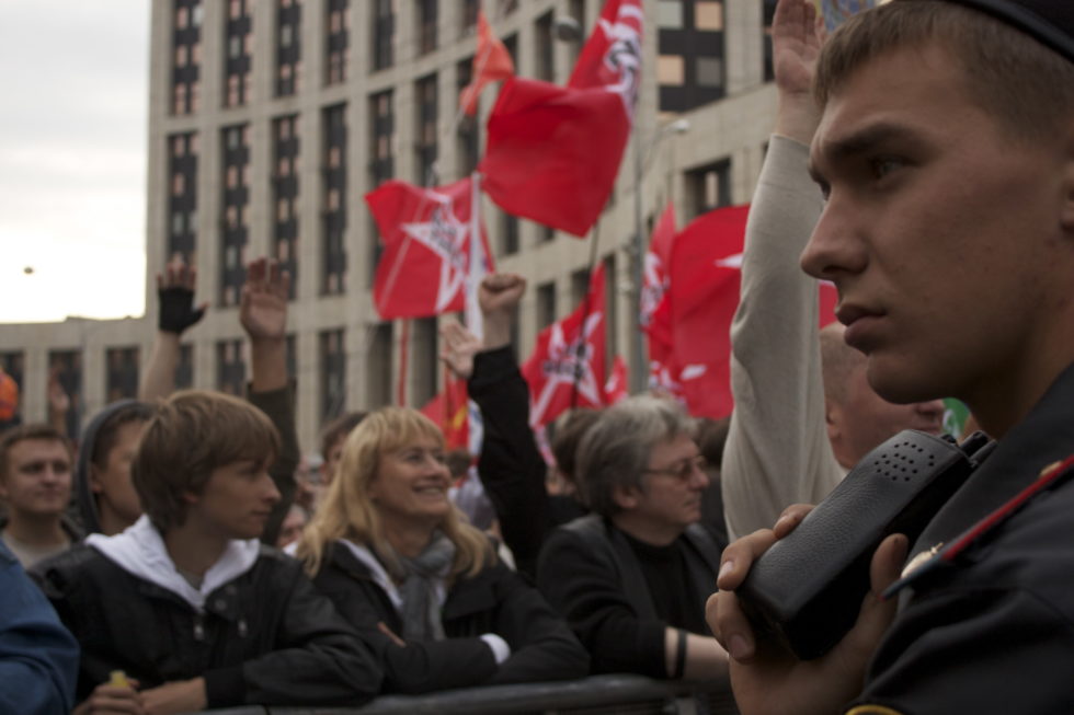 Während Putin zuerst die Opposition lange nicht ernstnahm, wurde im Frühsommer gleich eine ganze Palette an neuen Gesetzen verabschiedet, um Demonstrationen zu erschweren. Das Vorgehen schien aber ein weiteres Mal eher spontan und planlos zu verlaufen, was der Regierung Putins einen grossen Teil ihrer Schlagkraft nimmt. Allerdings fehlt es nicht nur der Regierung an Organisation, sondern auch den Oppositionsbewegungen. So gibt es für den sogenannten «Marsch der Millionen» keinen Startschuss und die Leute bewegen sich in kleinen Gruppen Richtung Sacharow Prospekt. Die fünfspurige Strasse ist für die Demonstration freigegeben worden und die Polizei riegelt die Kolonnen auf beiden Seiten ab.